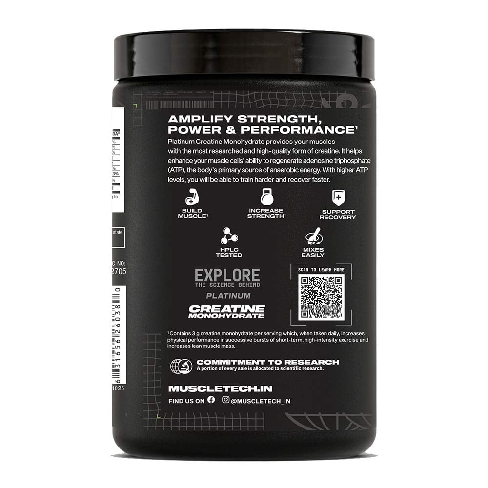- Muscle Repair And Recovery: Platinum 100% creatine supports muscle mass by limiting muscle breakdown and promotes muscle repair and new muscle growth. This gives you a post-workout recovery and better performance results.