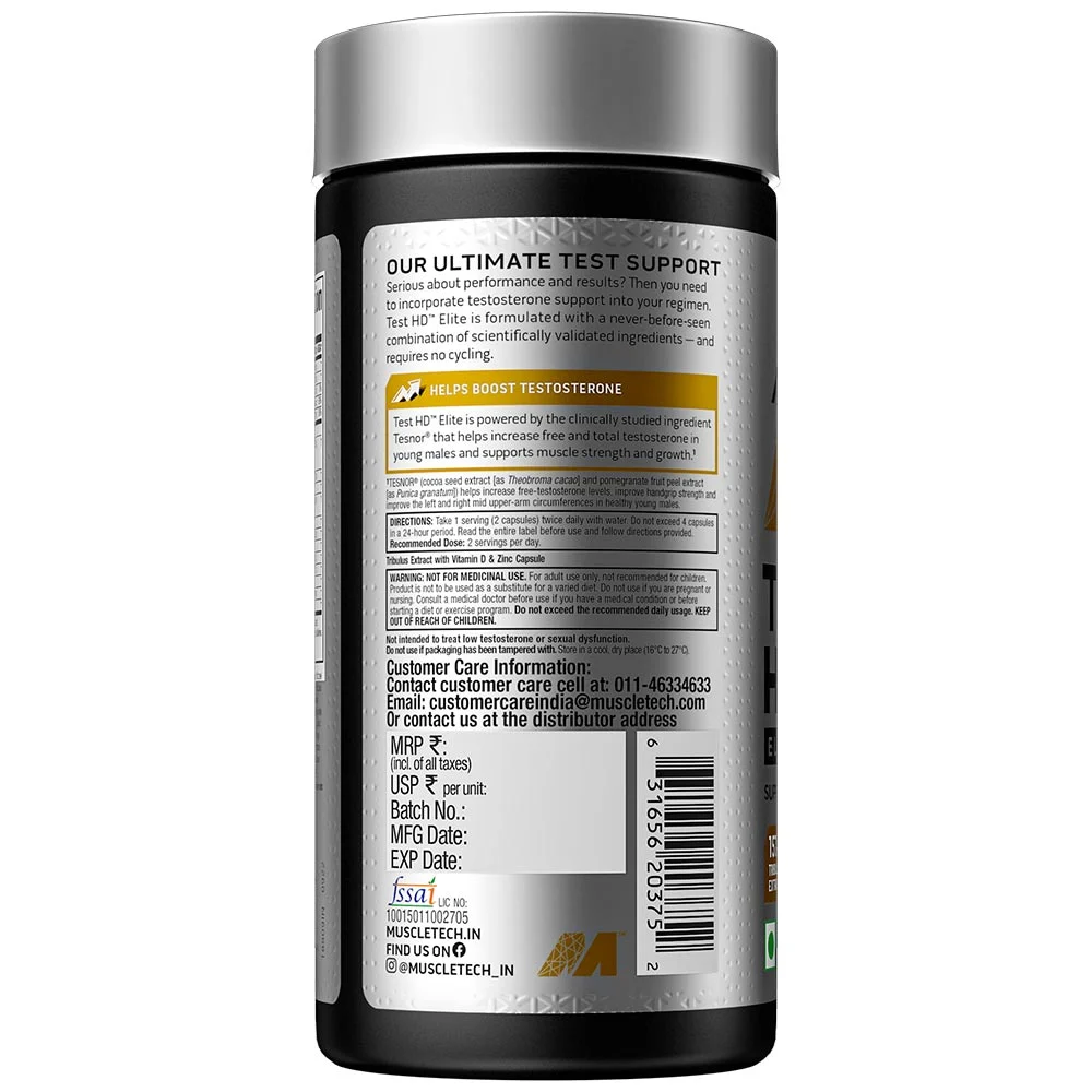 When used as recommended, MuscleTech Test HD Elite is generally well tolerated. It does not cause jitters, sleep disturbances, or hormonal imbalance. Individuals with medical conditions should consult a doctor before use.